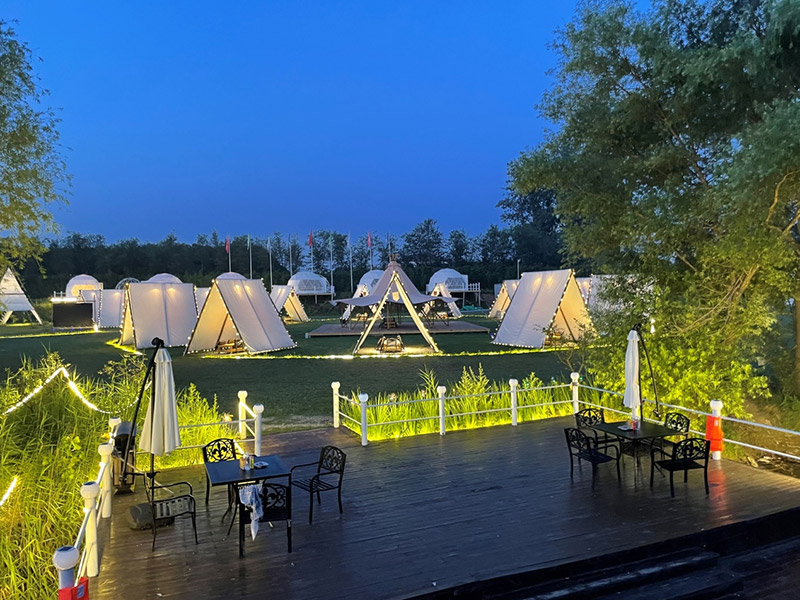 此區(qū)塊位于規(guī)劃地塊的東北角濱水區(qū)塊,該區(qū)塊項目設計意在配合度假酒店,加載精品化的休閑度假項目,打造精品度假體驗。其主要內設項目包括垂釣俱樂部、房車營地、篝火廣場、精品帳篷酒店、帳篷餐廳和露天燒烤園等等