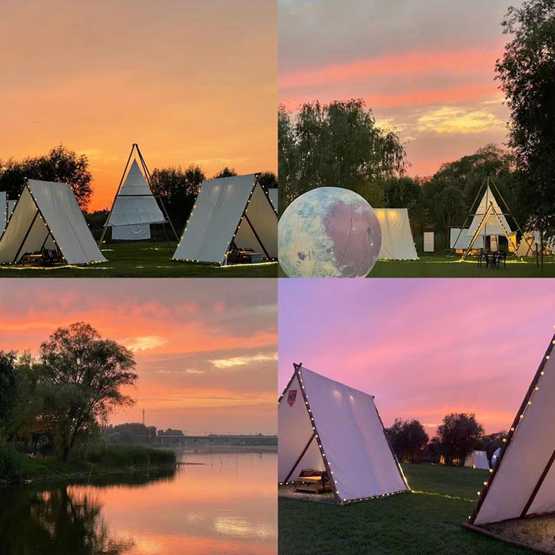 將現(xiàn)狀高爾夫練習場草坪區(qū)域改造成帳篷營地,供游客進行露營、觀星、野餐、篝火晚會等活動,區(qū)塊劃分帳篷搭建位,規(guī)范游客合理安排帳篷位置。設置露營野餐的服務點,提供售賣零食飲料和帳篷出租的服務。